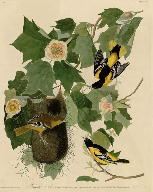 Baltimore Oriole Black Ornate Wood Framed Art Print with Double Matting by Vintage Apple Collection