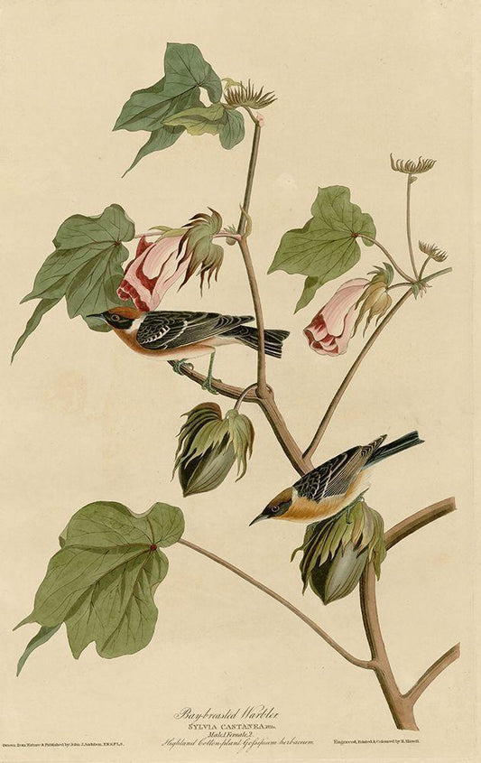 Bay Breasted Warbler Black Ornate Wood Framed Art Print with Double Matting by Vintage Apple Collection