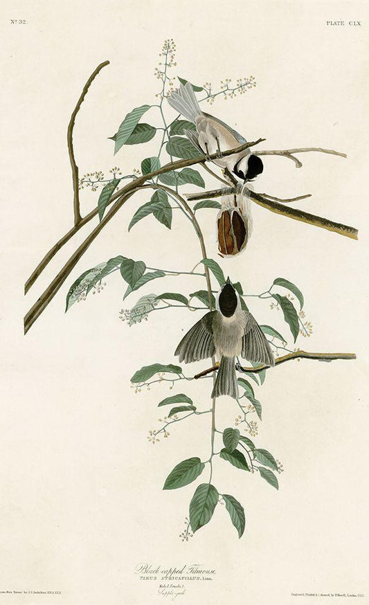 Black Capped Titmouse Black Ornate Wood Framed Art Print with Double Matting by Vintage Apple Collection