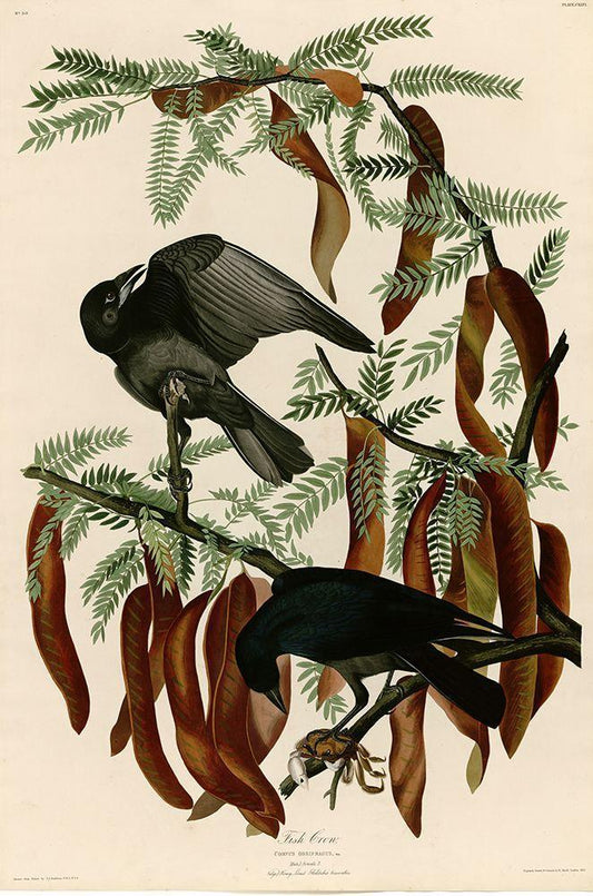 Fish Crow Black Ornate Wood Framed Art Print with Double Matting by Vintage Apple Collection