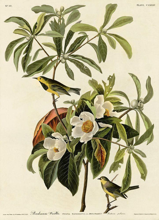Bachmans Warbler Black Ornate Wood Framed Art Print with Double Matting by Vintage Apple Collection