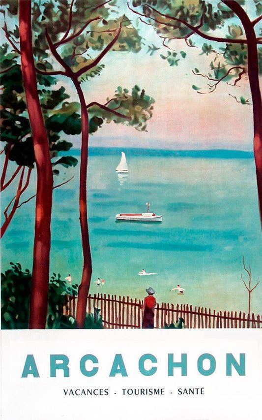 Arachon France Black Ornate Wood Framed Art Print with Double Matting by Vintage Apple Collection
