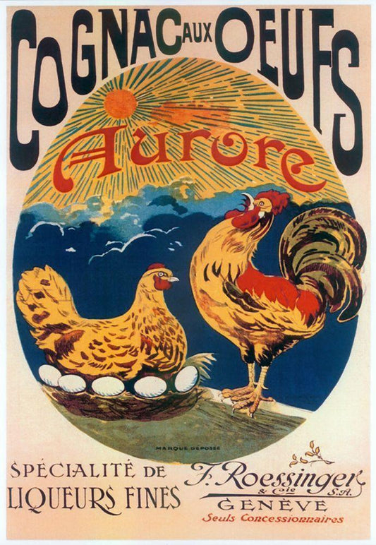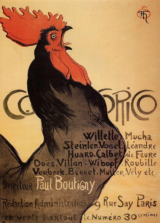 Cocorico Cteinlen Black Ornate Wood Framed Art Print with Double Matting by Vintage Apple Collection