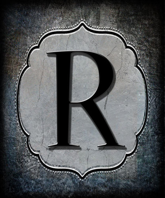 Letter R Black Ornate Wood Framed Art Print with Double Matting by LightBoxJournal