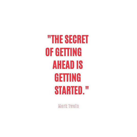 Mark Twain Quote: Getting Started Black Modern Wood Framed Art Print with Double Matting by ArtsyQuotes