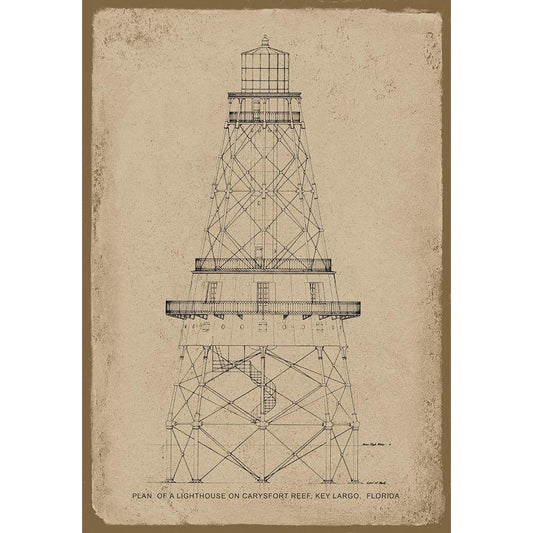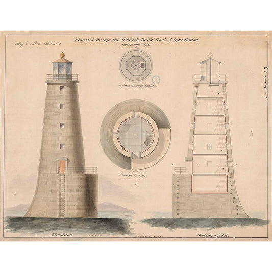 Lighthouse Architectural Drawing Black Modern Wood Framed Art Print with Double Matting by Anonymous