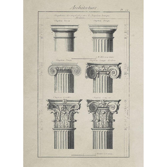 Greek Column Comparisons Black Modern Wood Framed Art Print with Double Matting by Anonymous