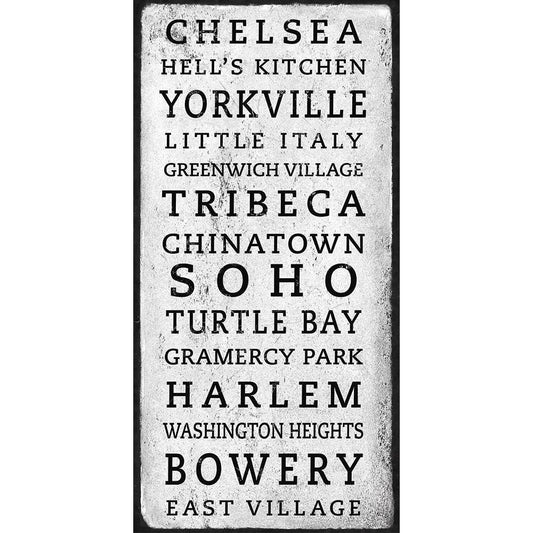 NYC Districts Sign BW Black Modern Wood Framed Art Print with Double Matting by Anonymous