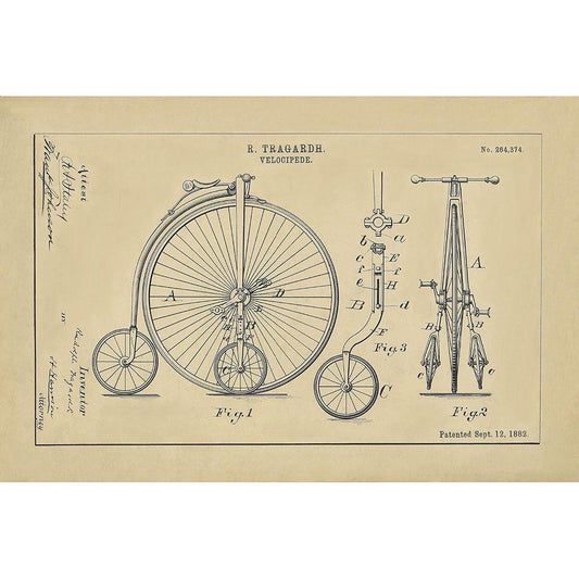 Velocipede Technical Drawing Black Modern Wood Framed Art Print with Double Matting by Anonymous