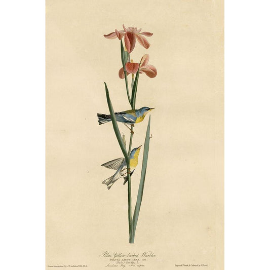 Blue Yellowbacked Warbler Black Modern Wood Framed Art Print with Double Matting by Vintage Apple Collection