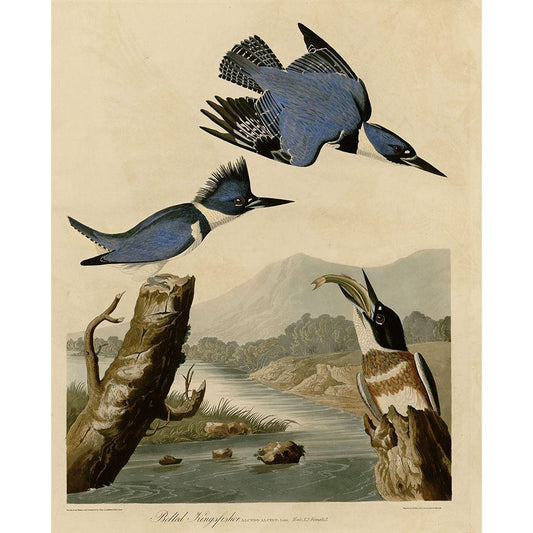 Belted Kingfisher Black Modern Wood Framed Art Print with Double Matting by Vintage Apple Collection