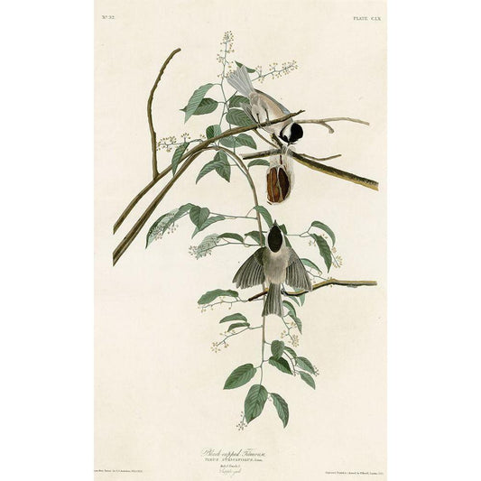 Black Capped Titmouse Black Modern Wood Framed Art Print with Double Matting by Vintage Apple Collection
