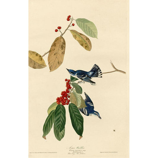 Azure Warbler Black Modern Wood Framed Art Print with Double Matting by Vintage Apple Collection