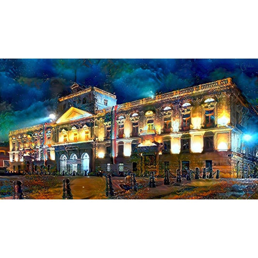 Mexico City Palace of Mines Night Black Modern Wood Framed Art Print with Double Matting by Gavidia, Pedro