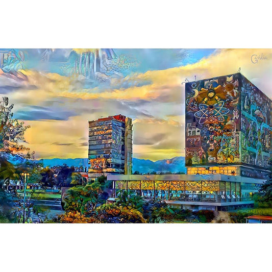 Mexico City University City Black Modern Wood Framed Art Print with Double Matting by Gavidia, Pedro