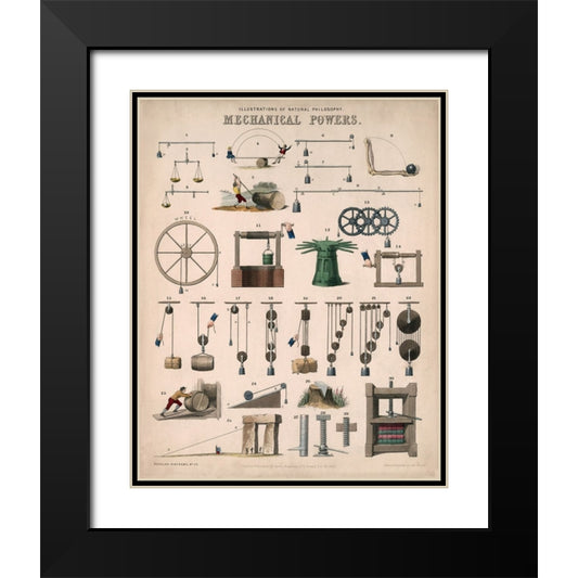 Mechanical Powers - 1850 Black Modern Wood Framed Art Print with Double Matting by Emslie, John
