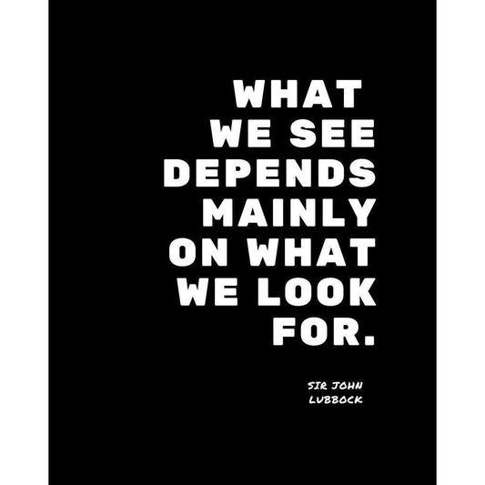 Sir John Lubbock Quote: What We Look For White Modern Wood Framed Art Print by ArtsyQuotes