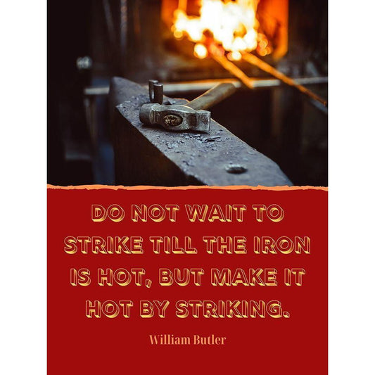 William Butler Quote: The Iron is Hot White Modern Wood Framed Art Print by ArtsyQuotes