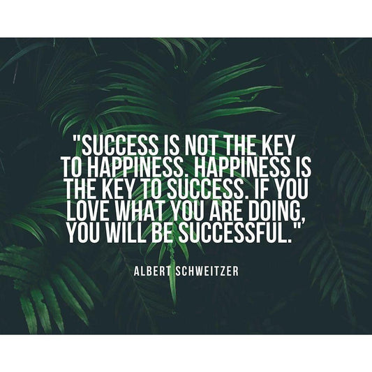Albert Schweitzer Quote: Happiness is the Key to Success White Modern Wood Framed Art Print by ArtsyQuotes