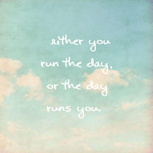 Jim Rohn Quote: Run the Day White Modern Wood Framed Art Print by ArtsyQuotes