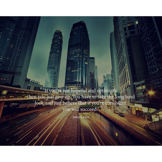 John Lewis Quote: Hopeful and Optimistic White Modern Wood Framed Art Print by ArtsyQuotes