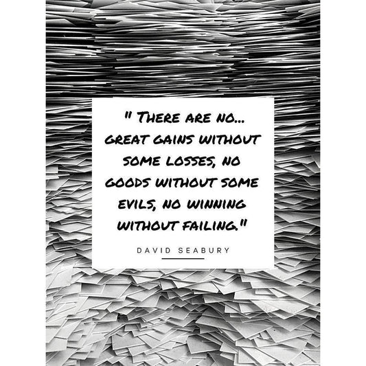 David Seabury Quote: Great Gains White Modern Wood Framed Art Print by ArtsyQuotes
