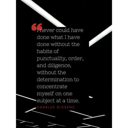 Charles Dickens Quote: Habits of Punctuality White Modern Wood Framed Art Print by ArtsyQuotes