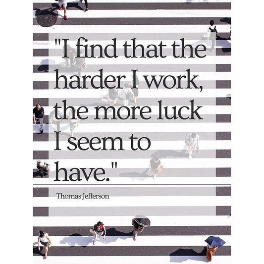 Thomas Jefferson Quote: Luck White Modern Wood Framed Art Print by ArtsyQuotes