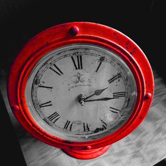 Red Clock White Modern Wood Framed Art Print by Phillip, Jamie