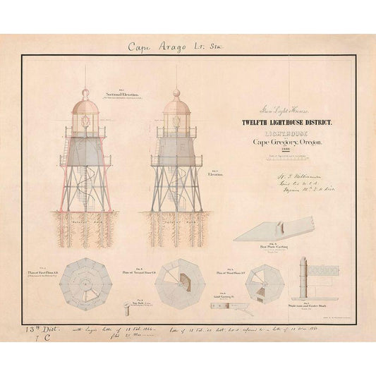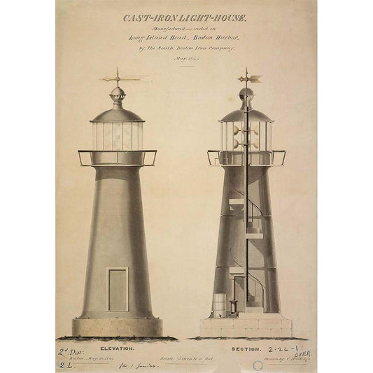 Cast-Iron Light House White Modern Wood Framed Art Print by C. Hastings