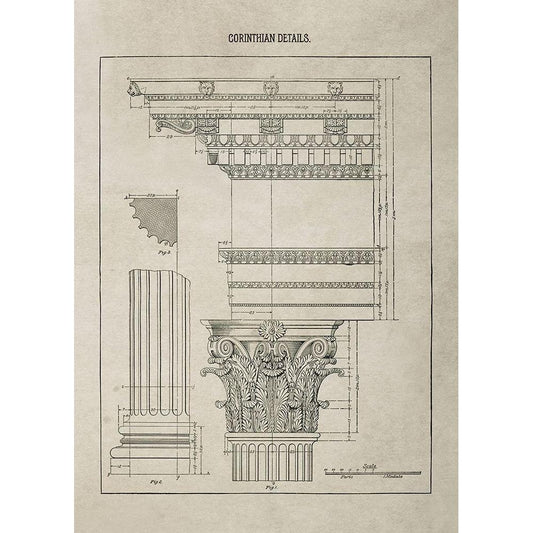 Corinthian Column Details White Modern Wood Framed Art Print by Anonymous