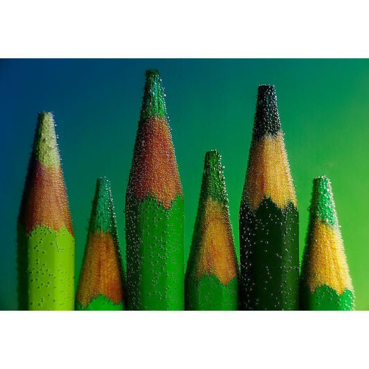 Colouring Pencils Close-up View White Modern Wood Framed Art Print by Atelier B Art Studio