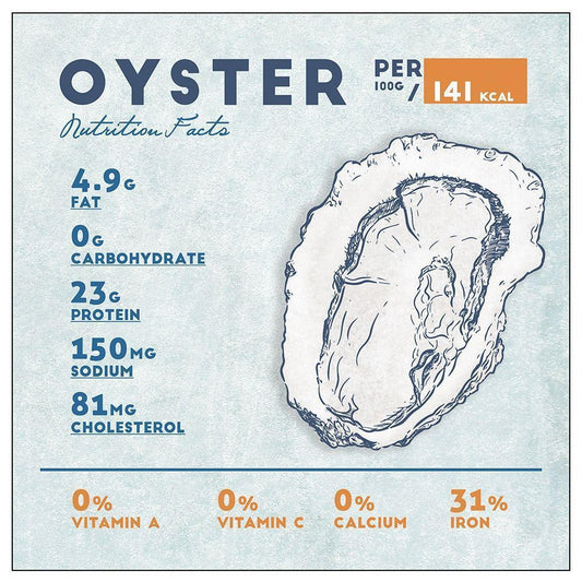 Oyster Nutrition Facts White Modern Wood Framed Art Print by Anonymous