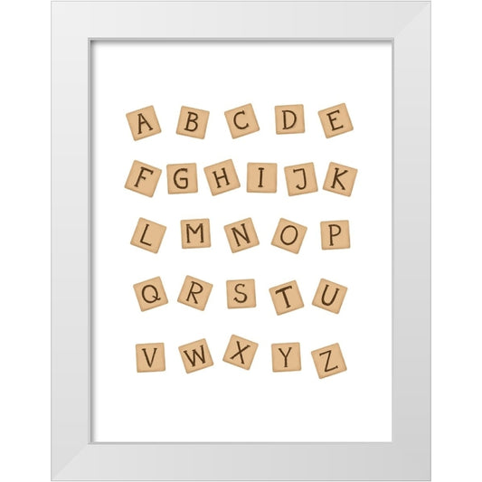 Wooden Blocks ABC White Modern Wood Framed Art Print by Eleonora, Aminah