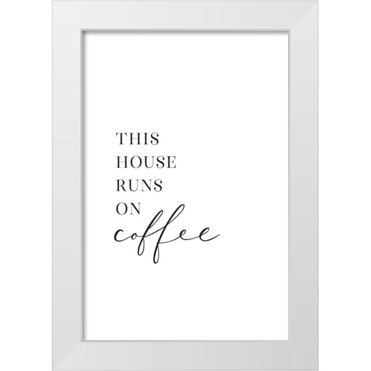 This house runs on coffee White Modern Wood Framed Art Print by Laiz Blursbyai, Rosana