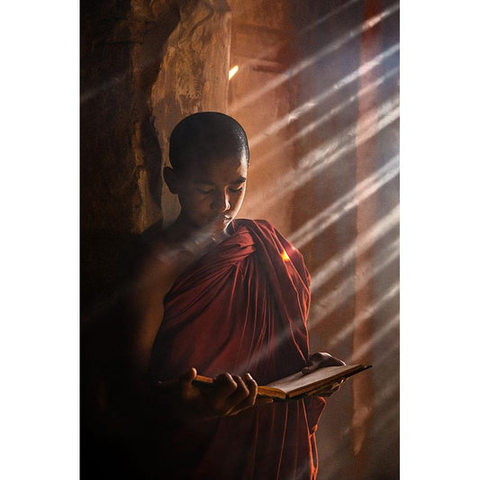A monk in the monastery White Modern Wood Framed Art Print by Yuk Kong, John