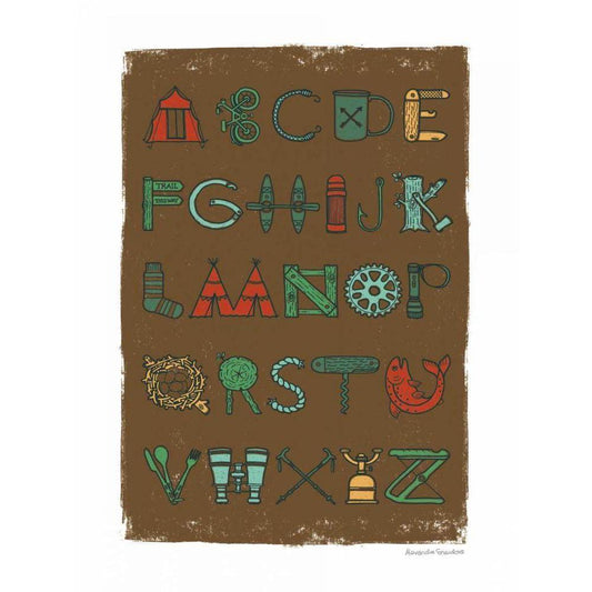 Camping Alphabet Dark White Modern Wood Framed Art Print by Snowdon, Alexandra