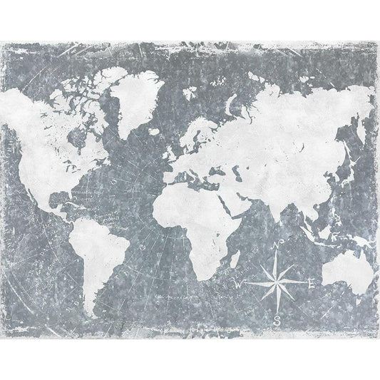 Galvanized World Map White Modern Wood Framed Art Print by CAD Designs
