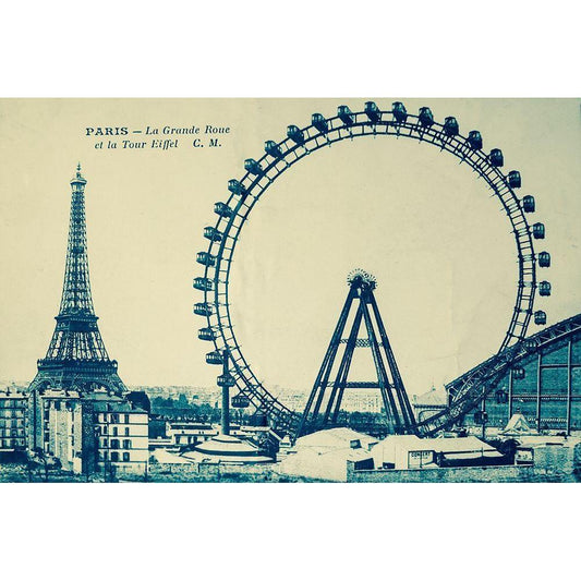 Grande Roue Carte Postale 1 White Modern Wood Framed Art Print by Vintage Apple Collection