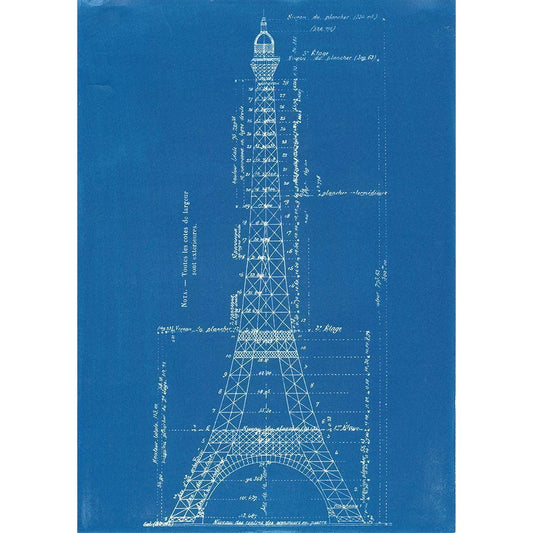 Eiffel Tower Blueprint White Modern Wood Framed Art Print by Vintage Apple Collection