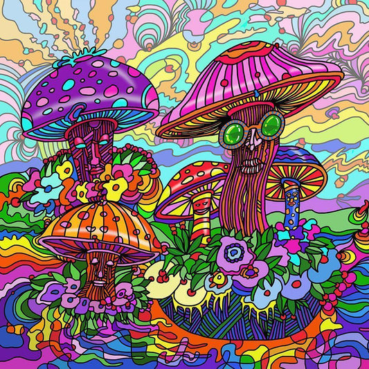 Pop-Art-Mushrooms White Modern Wood Framed Art Print by Green, Howie