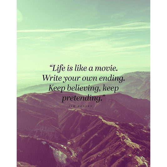 Jim Hensen Quote: Life is Like a Movie Gold Ornate Wood Framed Art Print with Double Matting by ArtsyQuotes