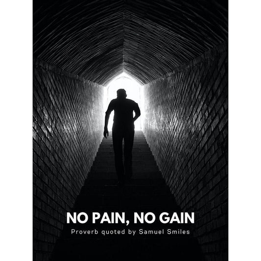 Samuel Smiles Quote: No Pains Gold Ornate Wood Framed Art Print with Double Matting by ArtsyQuotes
