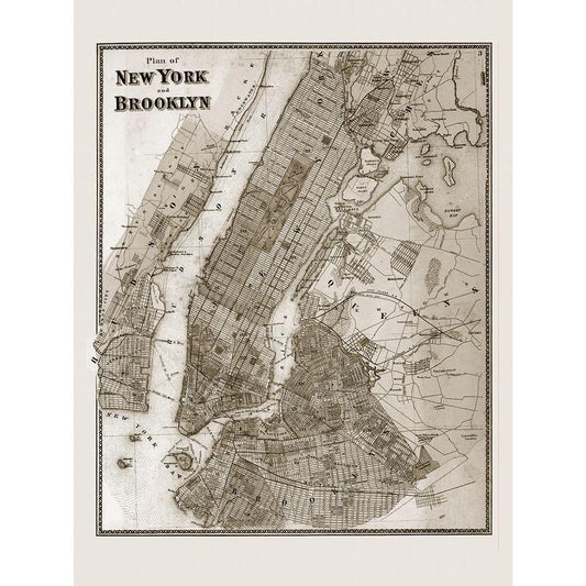 The Plan of New York and Brooklyn, 1867 Gold Ornate Wood Framed Art Print with Double Matting by Anonymous