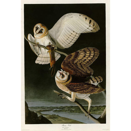 Barn Owl Gold Ornate Wood Framed Art Print with Double Matting by Vintage Apple Collection
