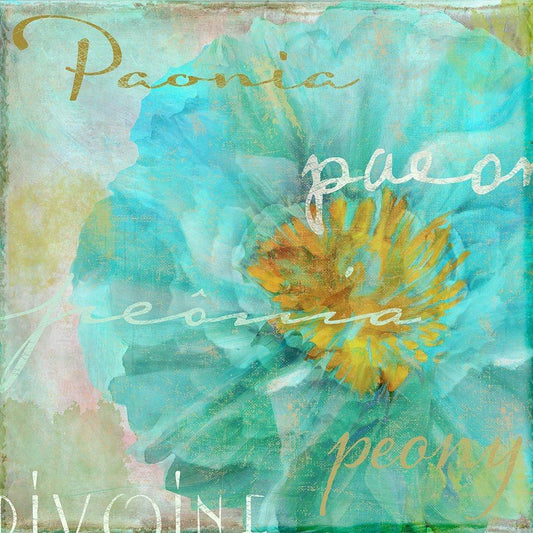 Blue Peony Light Gold Ornate Wood Framed Art Print with Double Matting by Sasha