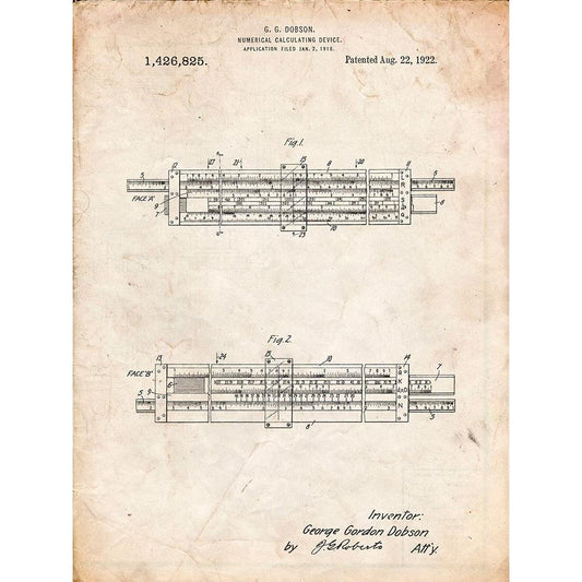 PP1040-Vintage Parchment Slide Rule Patent Poster Gold Ornate Wood Framed Art Print with Double Matting by Borders, Cole