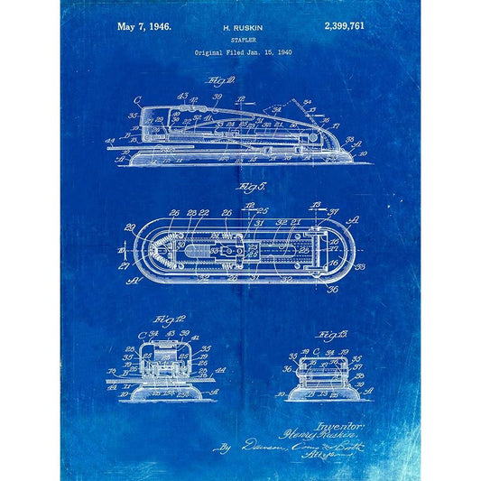 PP1052-Faded Blueprint Stapler Patent Poster Gold Ornate Wood Framed Art Print with Double Matting by Borders, Cole