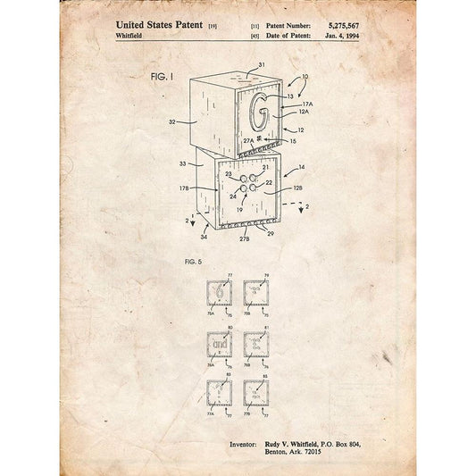 PP674-Vintage Parchment Childrens Building Block Gold Ornate Wood Framed Art Print with Double Matting by Borders, Cole