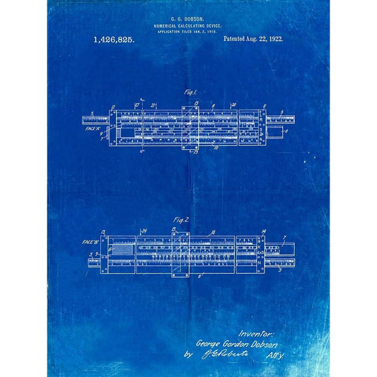 PP1040-Faded Blueprint Slide Rule Patent Poster Gold Ornate Wood Framed Art Print with Double Matting by Borders, Cole